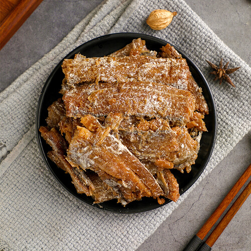 经了独特配方制作的带鱼,口感嫩滑,弹力十足,是一款老少皆宜的美食。百分之九十都是鱼肉,吃起来口感很好。