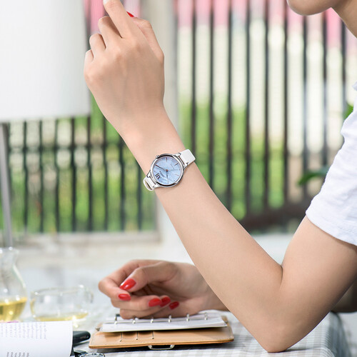 双按式蝴蝶表扣显得美观,佩戴舒适贴合手腕。表壳采用不锈钢材质制作,光滑细腻,经久耐磨。50米防水,实用性强。