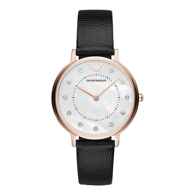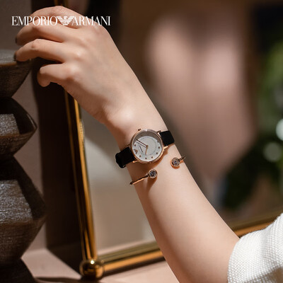 简约珍珠贝母色表盘璀璨吸睛,低调中带着奢美,黑色表带突出干练商务的风格。表冠圆润迷人,尽显细腻的制作工艺。