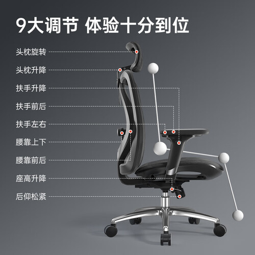 采用双向工学腰靠,可以自由上下或者左右调节,以适用于不同身高的人,支撑腰椎,减轻压力。头枕可以调节,多角度变化承托头部。