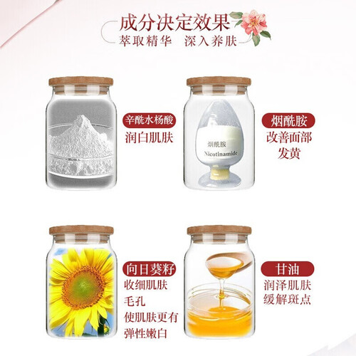 小分子状态的精华更容易被肌肤吸收,也更能在肌肤深层发挥作用。天然植物提取物,能够润白肌肤,让肌肤保持润泽。