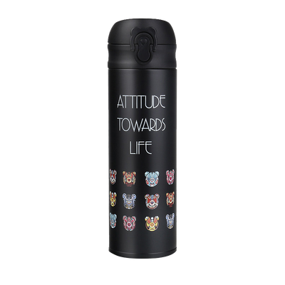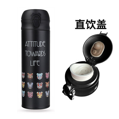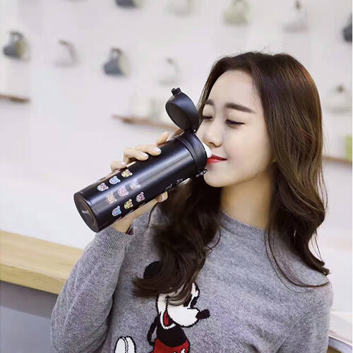 弹跳式杯盖设计,单手都可操作,有效避免用手直接碰触杯口,抑制细菌的滋生;杯身加以卡通图案点缀,活泼可爱。