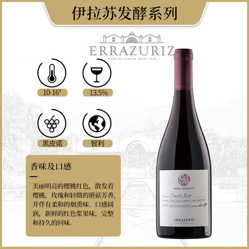 黑皮诺葡萄经过天然发酵,口感圆润,滋味鲜爽。同时散发樱桃、玫瑰、蘑菇的混合香气,令人难忘。
