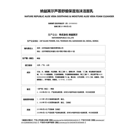 自然共和国芦荟舒洁面乳