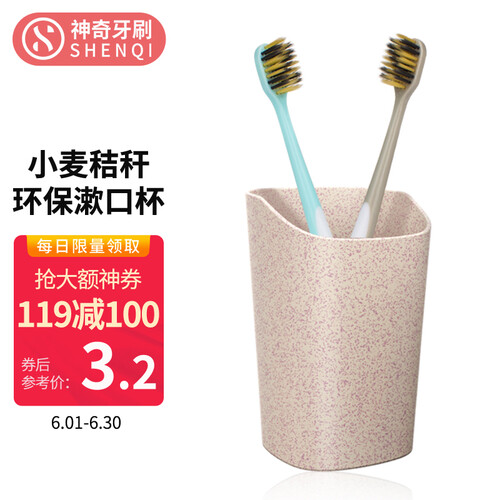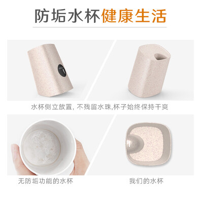 采用天然的小麦秸秆原料,安全环保可降解,且杯子可32°侧立,自然晾干底部无积水,自带牙刷插槽,分开放置便捷卫生。