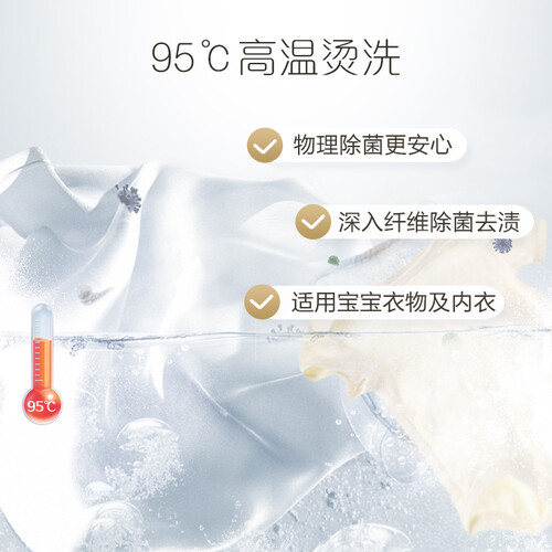 具有95℃高温烫洗功能,深度清洁衣物,远离病菌螨虫,呵护宝宝娇嫩肌肤。采用不锈钢内筒,光滑明亮,耐磨损。
