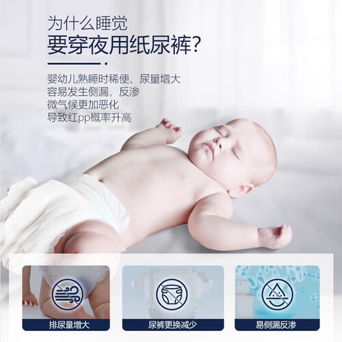 蕴含修护霜的纸尿裤,即使在干燥的环境下使用,依旧可以保持屁屁的娇嫩。同时3条尿显设计,对妈妈来说非常方便。