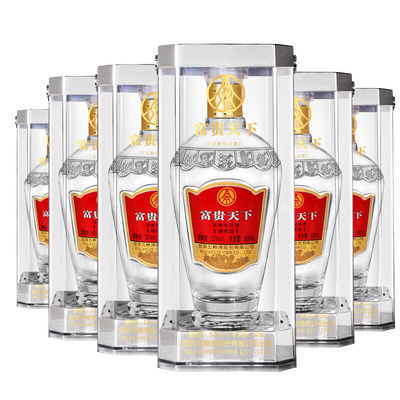 秉承传统的纯粮酿造的白酒,味道香醇,色泽清亮无杂质。通透的瓶身,金红色酒标,尽显时尚大气的风范。