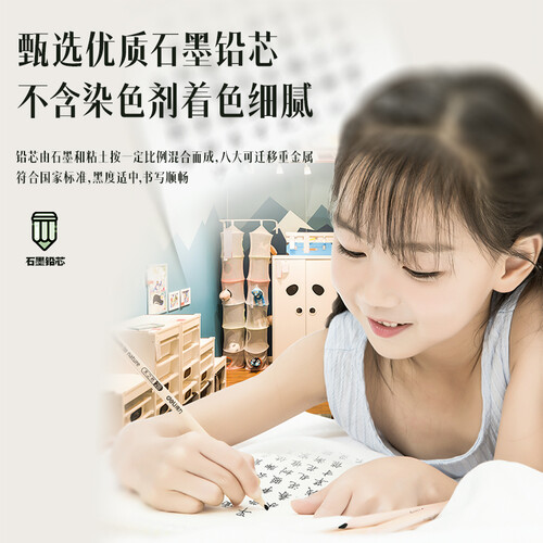 含碳量高的石墨笔芯,书写流畅顺滑,笔触细腻不易断;天然椴木笔杆经过软化处理,削笔省力声音清脆,握感舒适绘画素描都适用。
