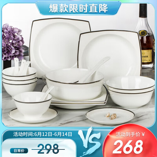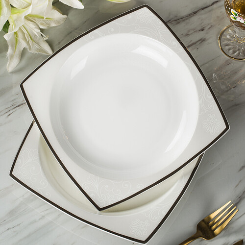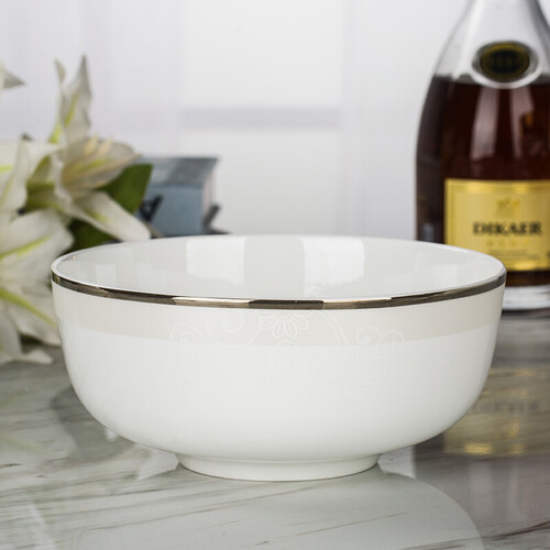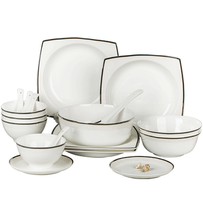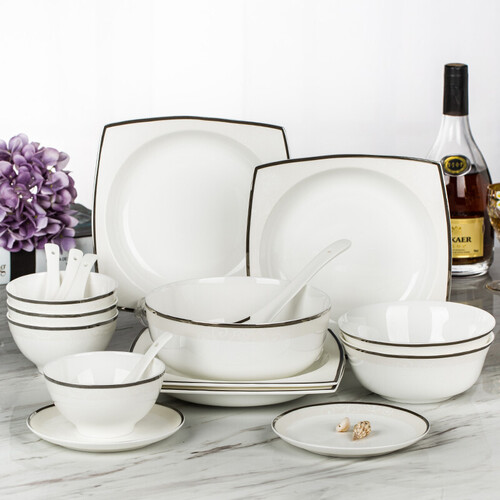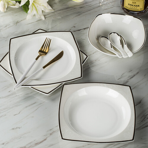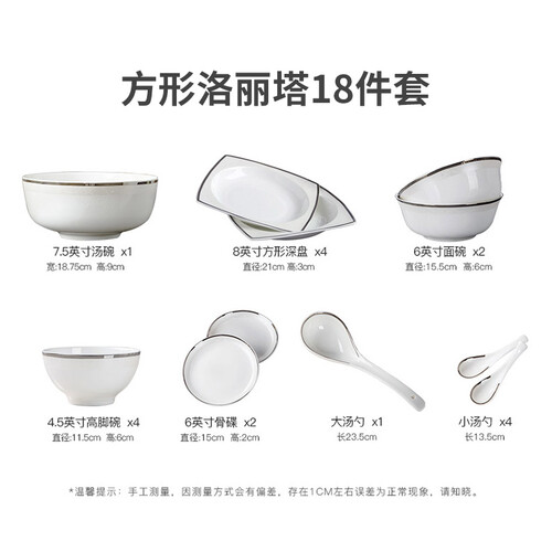 洛威餐具来自景德镇,华丽的浮雕与银边修饰,轻薄透亮,彰显景德镇品质,西式简约风格,18头组合。