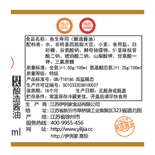 伊例家 自然鲜味酱油