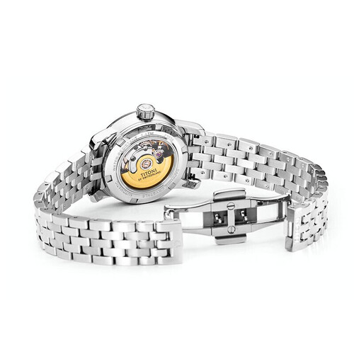 表盘采用撞色设计,打破单一色彩感,视觉层次更丰富。底盖采用透明设计,展露出内部结构,更具机械美感。