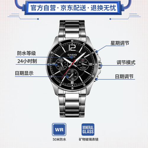 卡西欧 商务防水石英表