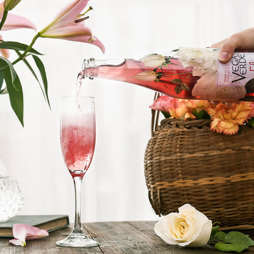 配有礼盒、灯罩和蜡烛,开启浪漫之旅,酒体带有明亮且新鲜的梅果香气,伴有甜美樱桃、蜜桔等果味,酸度活泼,气泡细腻。