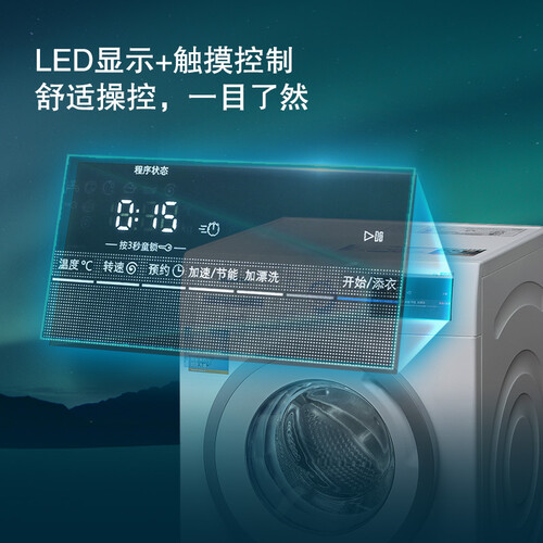 8公斤超大容量,满足全家衣物洗涤需求。深层消毒功能,衣物更加干净安全。LED简易显示屏,操作简单明了。