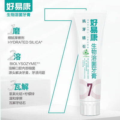 牙膏通过溶菌酶科技,能够有效清除牙垢,溶解牙结石。生物酶稳定技术,增加牙膏中的活性,有效溶解口腔细菌。