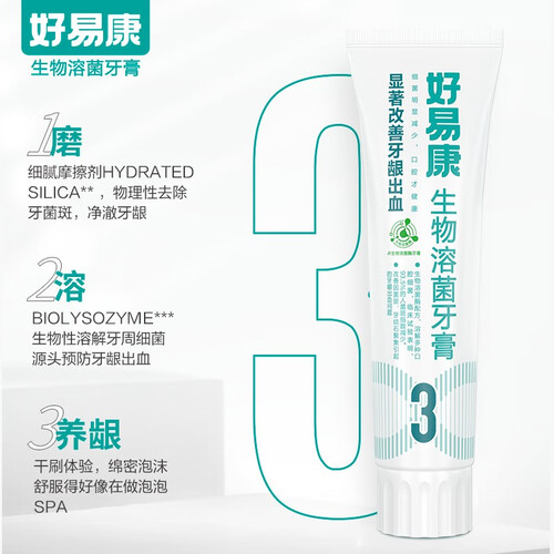 生物溶菌酶成分,可以强健牙龈,抵御牙龈损伤。富含茶香薄荷提取物小分子,可以深层呵护口腔,减少牙龈出血等问题。