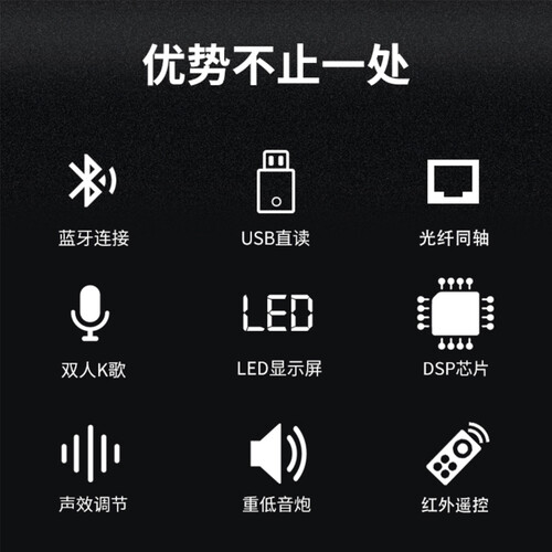 带有蓝牙连接设计,无线配对,轻松呈现真实环绕音效。内置重低音炮,音质浑厚,让你体验影院般的视听。