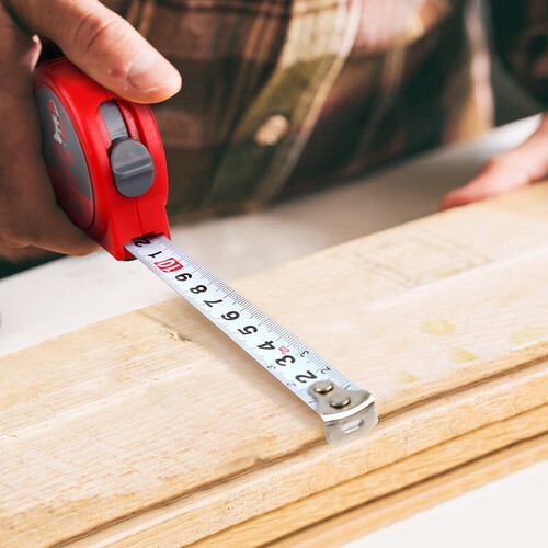 具有强防水性能,抗压耐磨外壳经久实用,快速收缩手柄方便快捷,优质钢化尺带不易弯折精准的测量,不锈钢卡扣皮带挂绳携带方便。