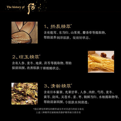 含有人参、麦冬等提取物,保湿滋润,改善肌肤干燥粗糙状态。质地细腻轻薄,容易被肌肤吸收,令肌肤释放活力。