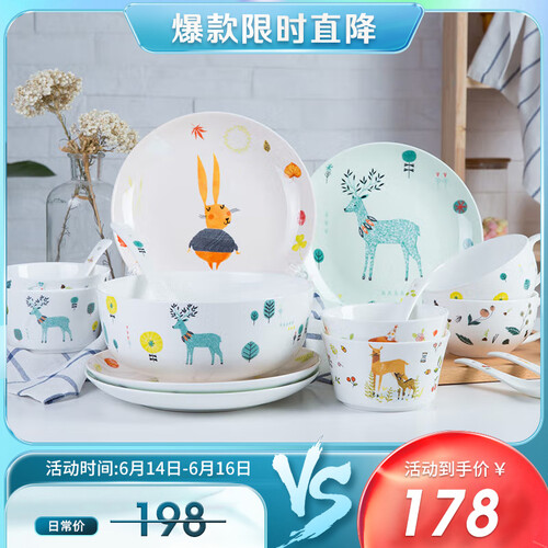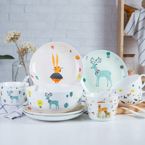 悠米兔卡通餐具套装有着卡通的印花设计,看起来萌萌的,为我们增添好食欲。餐具采用无铅铬高温烧制,安全健康不掉色。