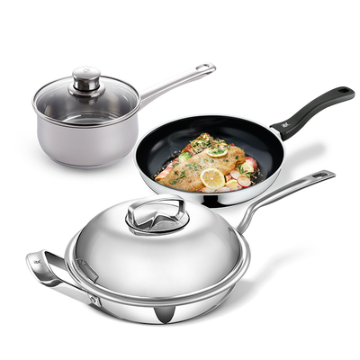 炒锅内壁无铆钉设计,内壁平滑光亮,不易藏匿污垢,方便清理。配以人体工学手柄,弧度自然,持握舒适,轻松省力。