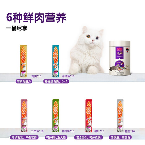 甄选9种高端天然肉类制作,富含丰富蛋白质,打造肉香满满的纯净猫条。细腻的肉浆,入口软滑易咀嚼,更利于消化吸收。