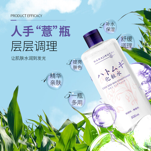 滋润肌肤|采用日本萃取技艺,萃取出浓郁薏仁精粹,为肌肤注入丰富营养水,增强肌肤吸收能力,享受牛奶般养润,多维呵护,补水保湿能力更加出色。