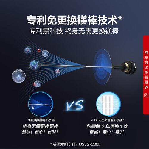 双棒交替加热,热水恢复速度快,满足接力洗浴,采用内胆清洁技术,快速排出水垢,带来干净沐浴体验。