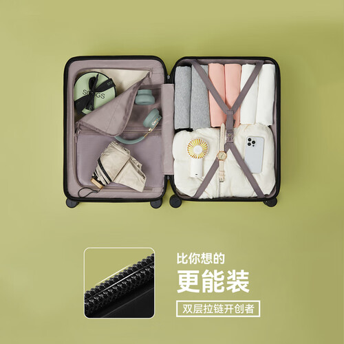 外观选用磨砂质感设计,搭配高颜值的孔雀绿,造型轻奢大方,携带更吸睛显品味。内里多个收纳隔层,科学收纳,干湿分离。