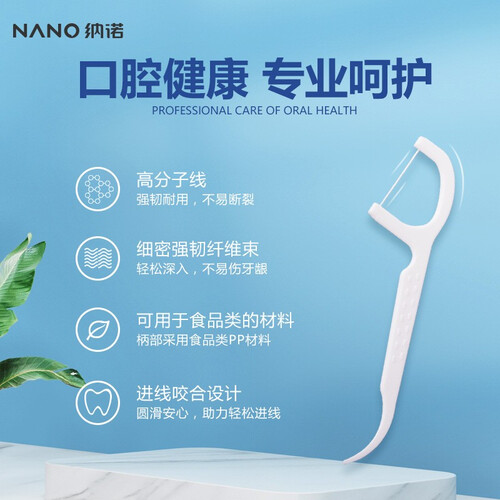 采用高分子涤纶丝材质,拥有较强的柔韧性,方便剔除牙齿中的残渣。弧形手柄设计,方便持握,使用时更便捷。