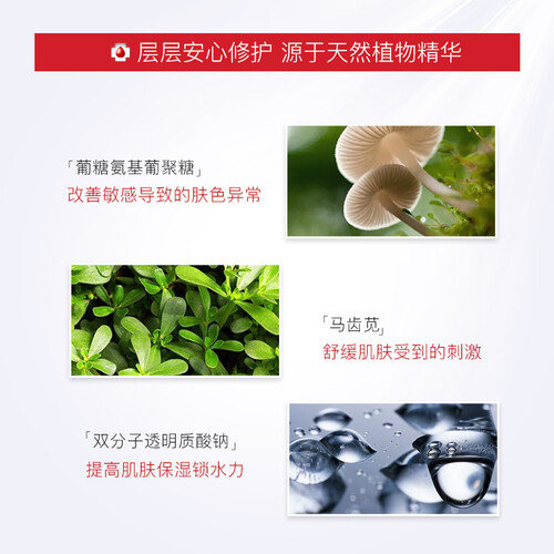 蕴含透明质酸钠保湿成分,舒缓呵护肌肤,为肌肤提供源源不断的水分,锁水保湿,改善肌肤泛红问题,重现白皙光滑肌肤。