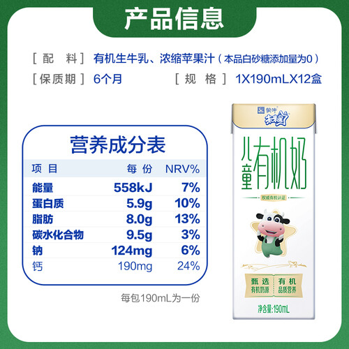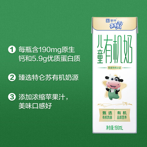 精选特仑苏有机奶源,不填加白砂糖,每分190mg原生钙,成分原生态,保证了醇正牛奶的营养成分。
