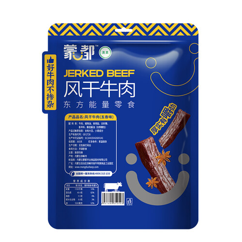 精细挑选的草原牛肉制成,干湿度适中,牛肉干味道鲜香不塞牙。大分量的包装设计,更适合分享。