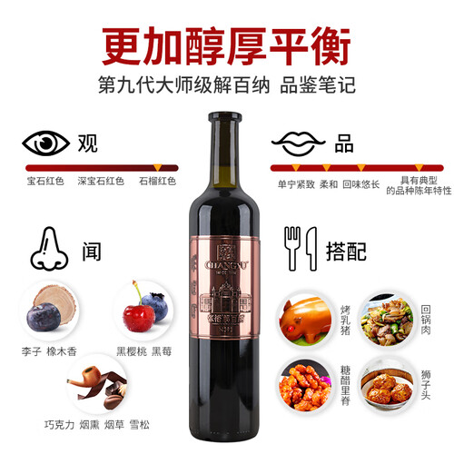 果香浓郁的干红葡萄酒,酒体清澈明亮,色泽如石榴红艳丽,口感爽滑,酒香优雅。休闲时刻小酌一杯,养颜又美容。