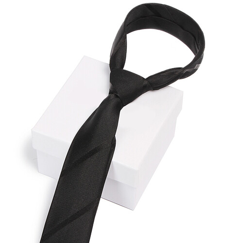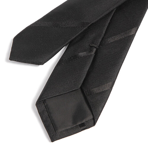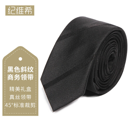 一款英伦风格的领带,百搭时尚的黑色调,配斜纹元素,凸显男士优雅气质。