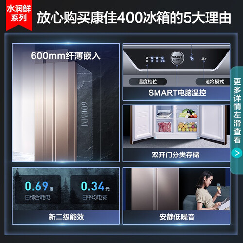 600MM超薄机身,可嵌入橱柜中,减少空间占用,告别拥挤厨房。七层冷凝管强深冷锁鲜,减少营养流失,口感鲜嫩如初。