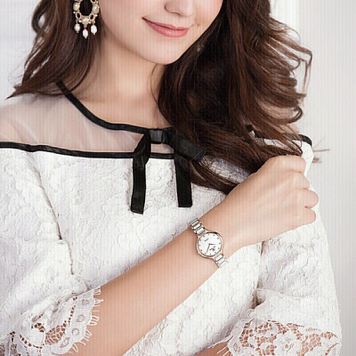 钻石镶嵌的刻度,能够给人更加闪耀时尚的感觉,加上无秒针的设计,很好的凸显出了您在配戴时的简约质感。