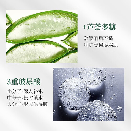 库拉索芦荟及时舒缓晒后或干燥引起的脆弱不适,肌肤更镇定。甜菜碱配合透明质酸,持续平衡补水,肌肤柔软水嫩。