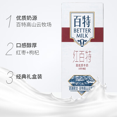 源自百特高山云牧场优质奶源,极速锁鲜冷链处理,锁住每一滴新鲜。牛奶搭配红枣枸杞,加倍滋养呵护,温养肠胃。