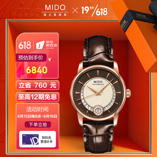 源于建筑灵感,给人永恒经典感动,波纹搭配巧克力色刻度,简约有个性,独立日期显示,全自动机械机芯,控时更准。