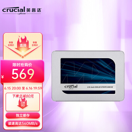 英睿达MX500系列固态硬盘,读取速度达到560MB/S,系统流畅运行卡顿,自适应读取配合纠错层,避免损坏文件。