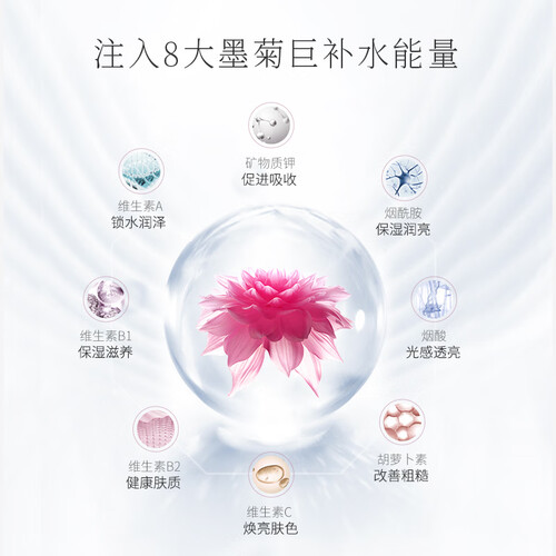 具备深彻补水保湿能力,从肌底开始改善肌肤干燥,同时锁住肌肤表面水分。丰富的烟酰胺成分,保湿润亮,让肌肤保持健康亮白。