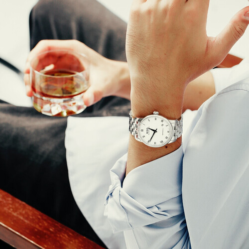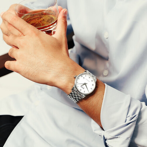 手表设计灵感源于法国歌剧院,拥有低调冷峻的光滑表圈,搭配复古罗马立体刻度,透明表底随时一览机芯运转之美!