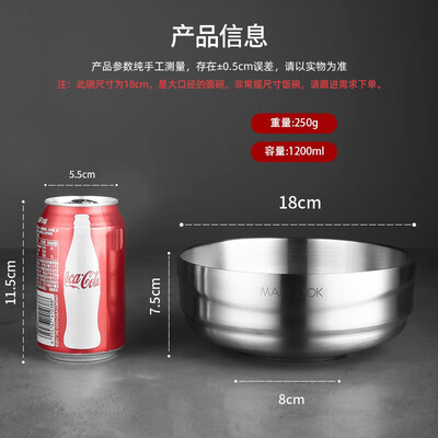 此款面碗选用304不锈钢材质,耐磨性能强,持久亮泽不褪色;采用双层中空结构,隔热效果好,握感舒适不烫手。