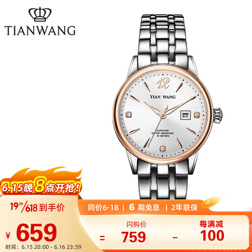 天王 钢带石英手表