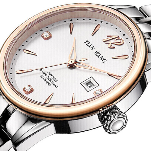 天王 玫瑰金石英钢带手表