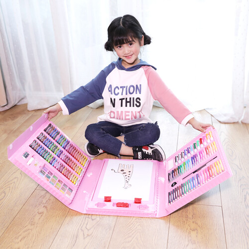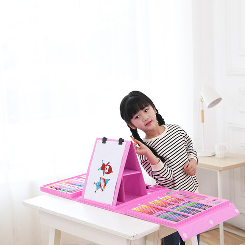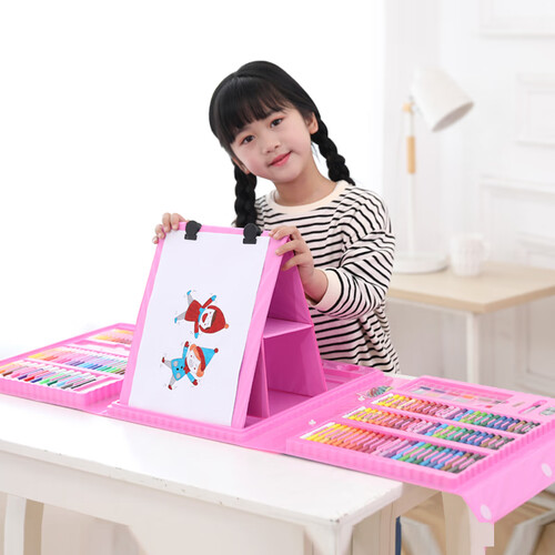 粉色套盒极具公主范,折叠结构收放自如,自带画板使用方便,画笔种类繁多颜色全面,上色均匀色彩饱满,书写流畅顺滑不卡顿。