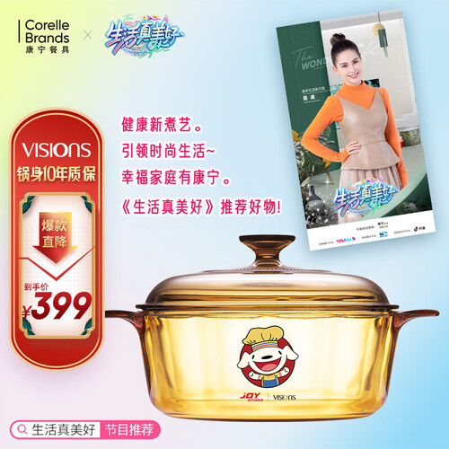 康宁晶彩透明耐热玻璃汤锅