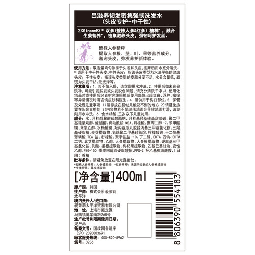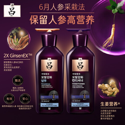这是一款滋养型洗发组合,如果头发特别脆弱易断的话,那就需要这款洗发水去强韧发根。使用珍贵的整株人参,带给头皮新体验。